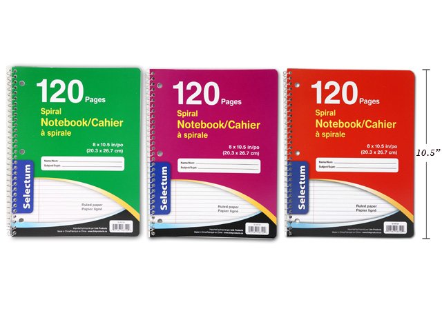 120 PAGE COIL NOTEBOOK, RULED PAGES 8X10.5″