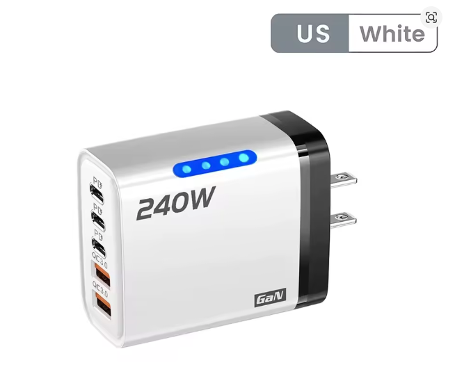 Built with a sleek yet robust design, this 240W wall charger is perfect for use at home, at the office, or on the go. Its lightweight and compact size make it an excellent companion for travels, ensuring your devices remain powered up wherever you are.