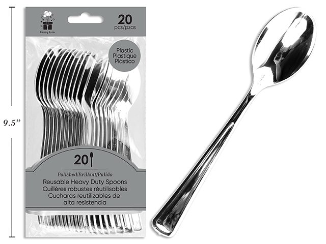 Premium Polished Plastic Silver Spoons 20/pack (Pk/4)